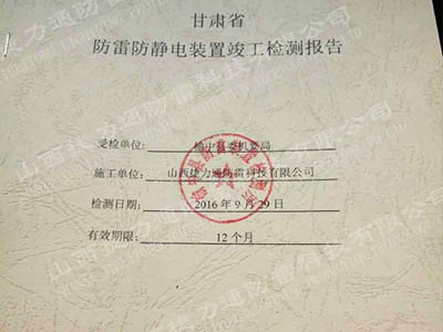 我單位山西捷力通防雷科技有限公司于2016年7月承接甘肅地區(qū)各縣政府機(jī)房防雷接地系統(tǒng),現(xiàn)經(jīng)有關(guān)部門驗(yàn)收合格后投入使用。