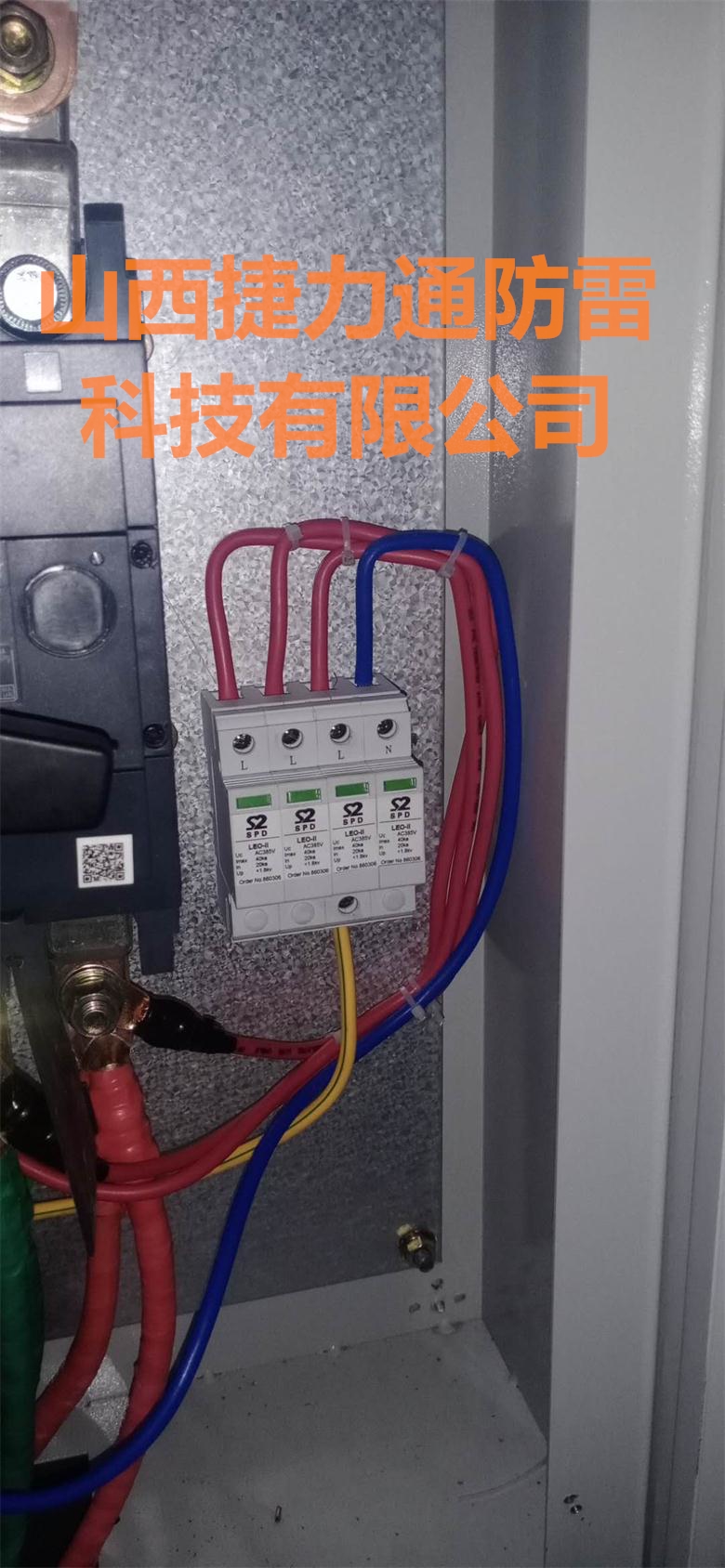 1.SPD應用于主配電系統380V第二級雷電防護,并聯安裝在建筑物總配電柜或配電箱的電源進線端,配35mm電氣導軌,可采用凱文連接方式。安裝前必須切斷電源,嚴禁帶電操作。