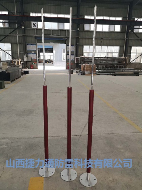 高性能絕緣復(fù)合材料接閃器采用鈦合金材料,根據(jù)電荷轉(zhuǎn)移原理選擇接閃器材料和結(jié)構(gòu),利用鈦高電阻特點(diǎn),調(diào)整合金配比,控制針體電阻,科學(xué)定制針體的長(zhǎng)度和內(nèi)徑,確保接閃時(shí)和雷電波諧振,在雷電流峰值時(shí)抗阻最大,一限制放電電流幅值,來(lái)減少電磁輻射危害,降低對(duì)引下線、接地網(wǎng)的沖擊;支撐桿采用航天用樹(shù)脂玻纖維復(fù)合材料,采用先進(jìn)螺旋纏繞工藝制造。