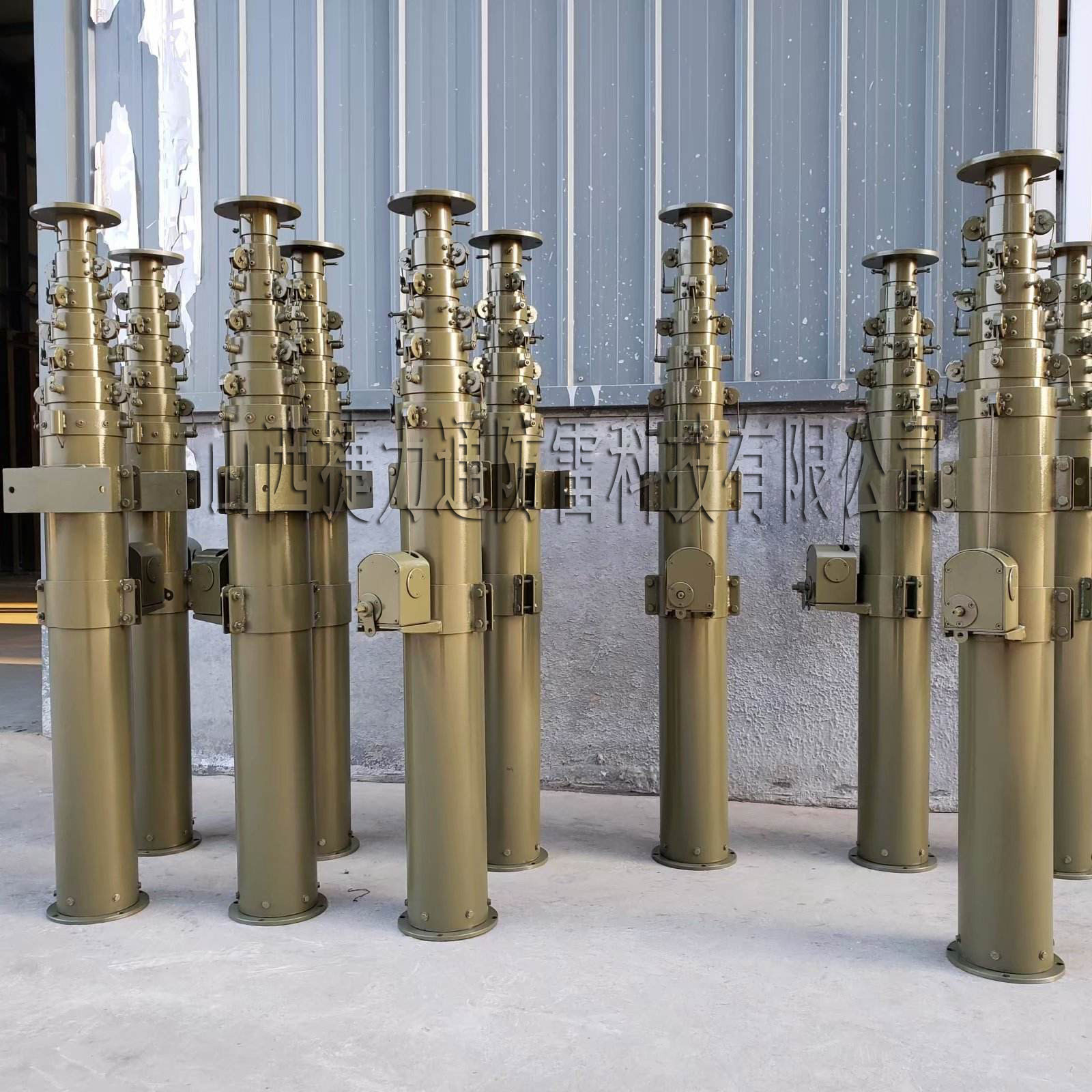 從工作原理和技術(shù)特征上來(lái)說(shuō),這種桅桿相當(dāng)于一個(gè)多節(jié)氣缸。在使用時(shí),通過(guò)向氣缸內(nèi)注入和排出空氣,以實(shí)現(xiàn)各節(jié)氣缸上升和下降運(yùn)動(dòng)。