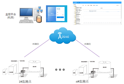 3、軟件層,所有數(shù)據(jù)通過內(nèi)置4G模塊傳輸至軟件平臺(tái),軟件釆用B/S架構(gòu)滿足監(jiān)控需求。