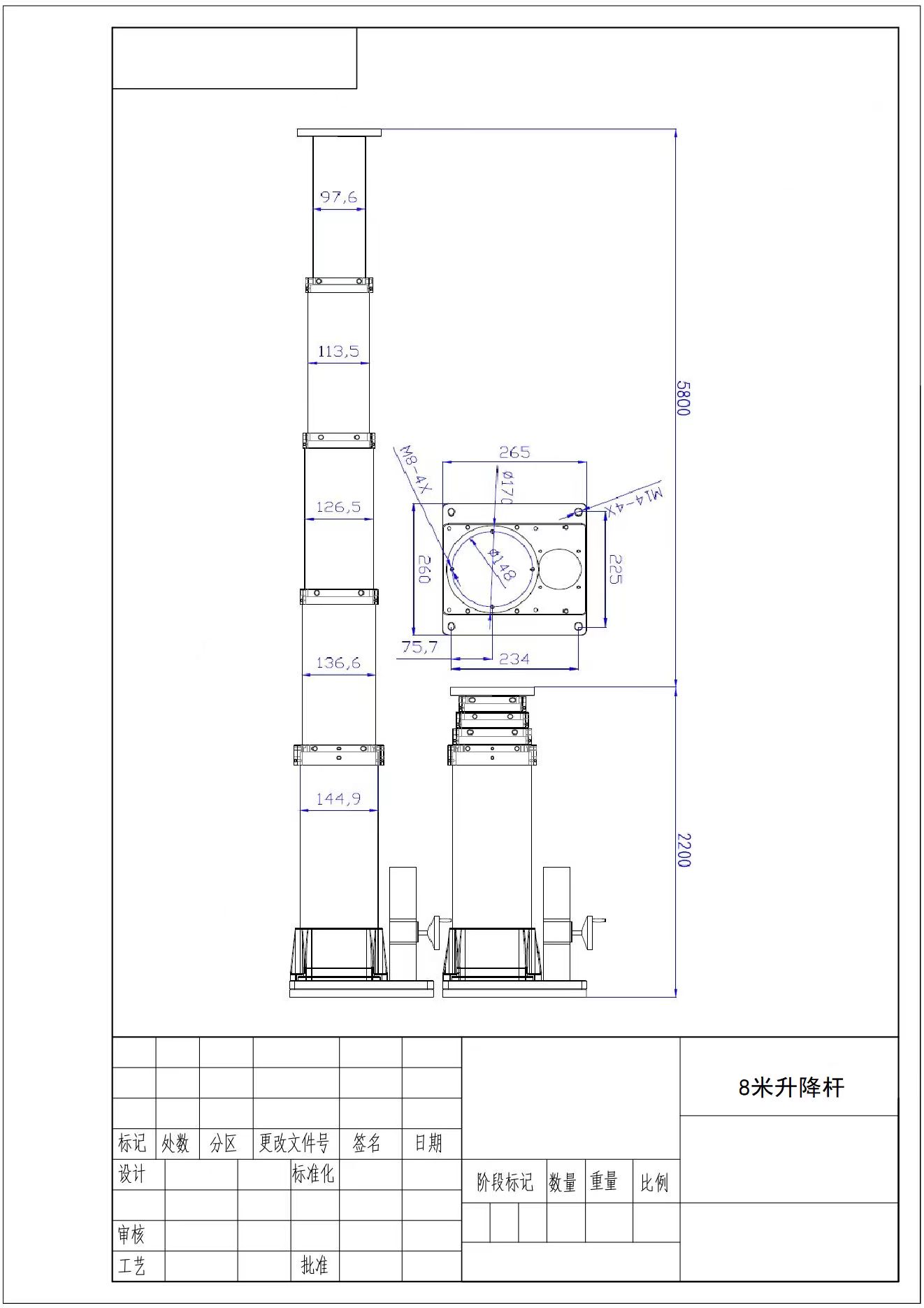 3.閉合高度1715±10mm(暫定),展開高度8000±100mm,承載≥300kg;