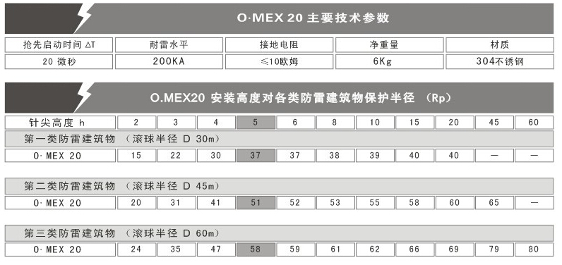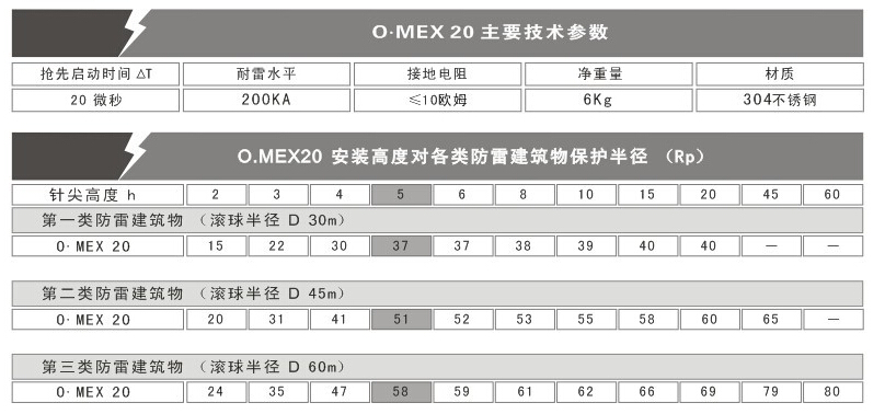 O.MEX20 提前放電避雷針特點(diǎn) :