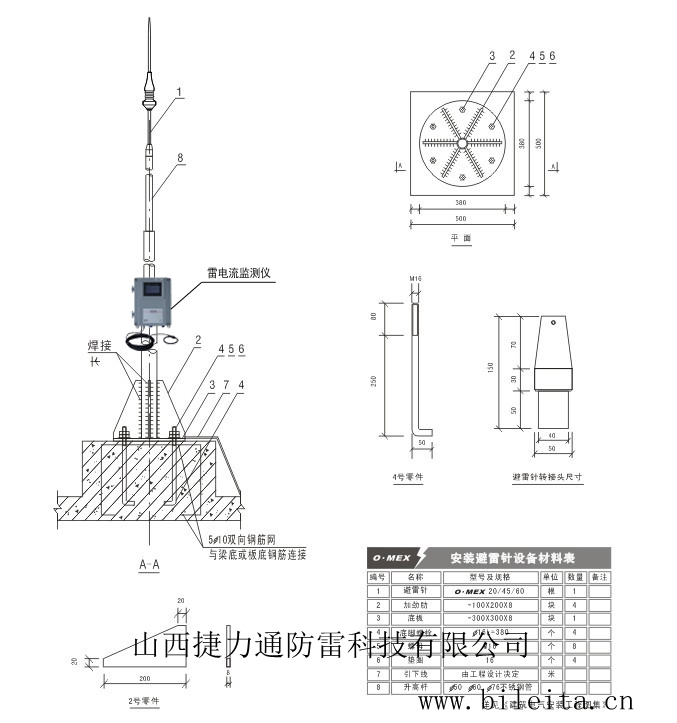O.MEX20提前放電避雷針主要由4部分組成: