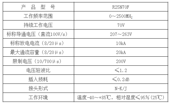 R25N70F型天饋防雷器用于保護天線饋電設備和收發(fā)系統(tǒng),使其免受雷電過電壓和感應過電壓所造成的損壞