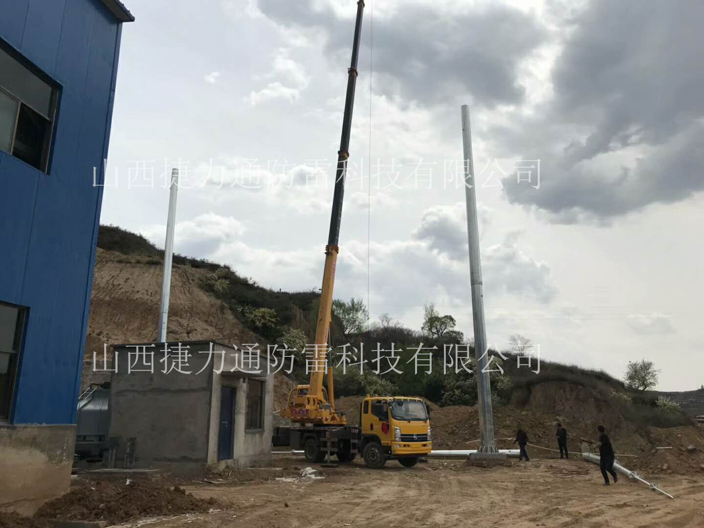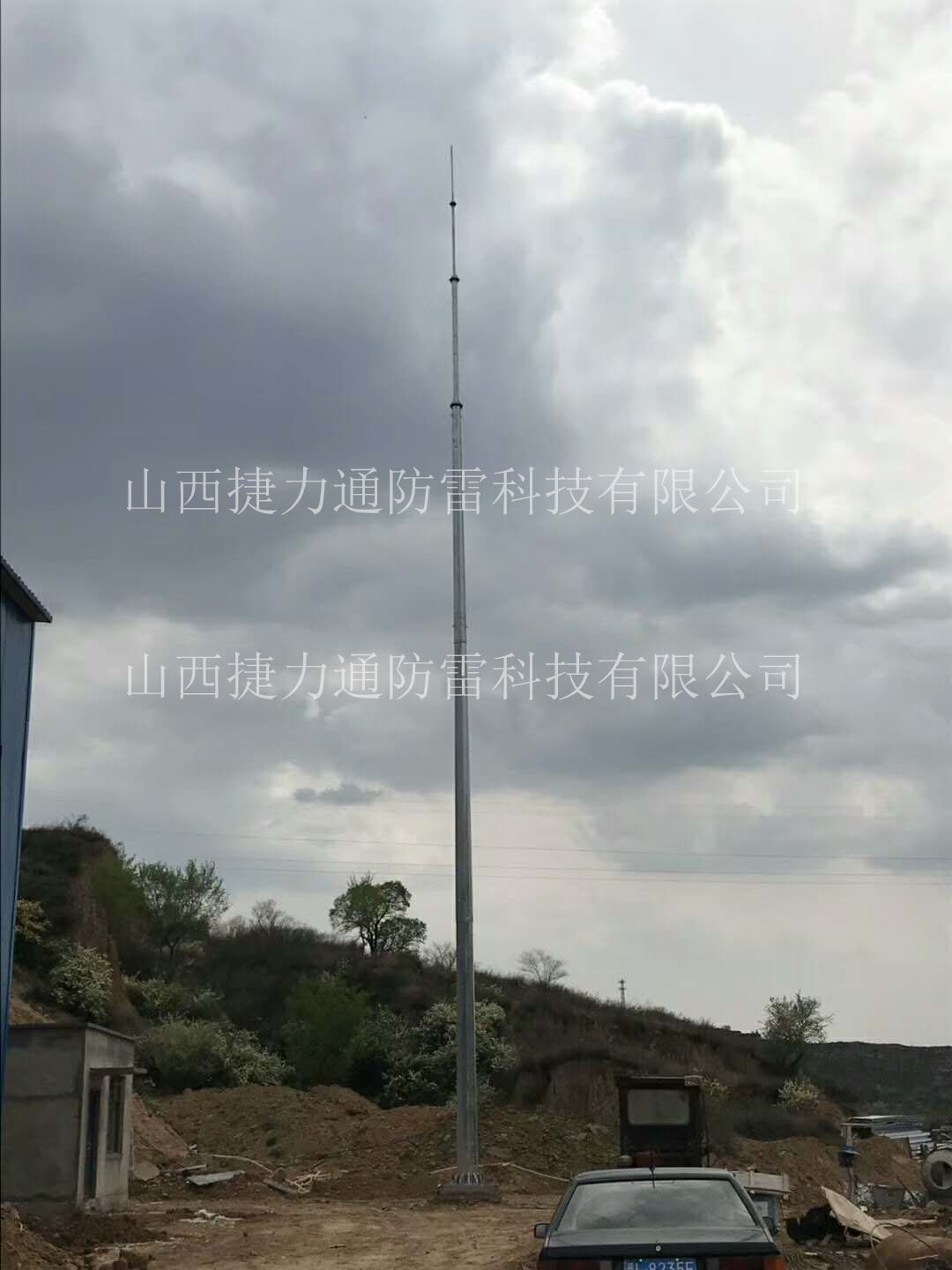 4、避雷針安裝時要打臨時拉線,基礎強度達到設計強度的100%方可起吊安裝。