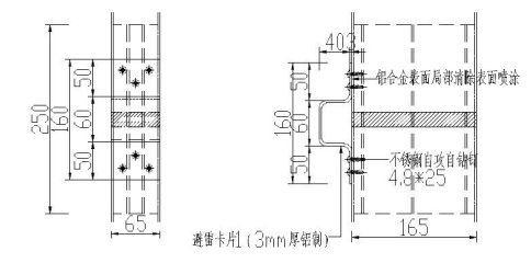 采用鋼插芯連接的豎龍骨之間采用∮12mm鍍鋅圓鋼跨接。