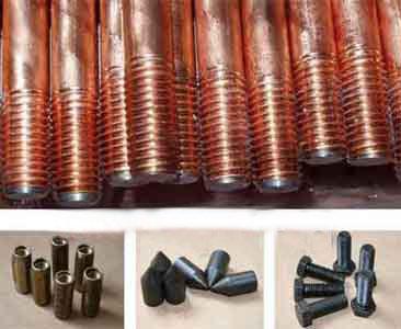 銅包鋼接地棒有組合式和單根式的兩種,組合式接地棒施工更加方便,配有同軸連接管、驅(qū)動頭和鉆頭等配件,根據(jù)不同地質(zhì)及使用要求可以通過硅黃銅連接管連接,任意增加鍍銅接地棒的長度。頂端采用驅(qū)動頭(連接螺栓)連接,供接地棒打深時打擊使用。末端采用特制鉆頭(連接螺栓)連接,將接地棒打深。
